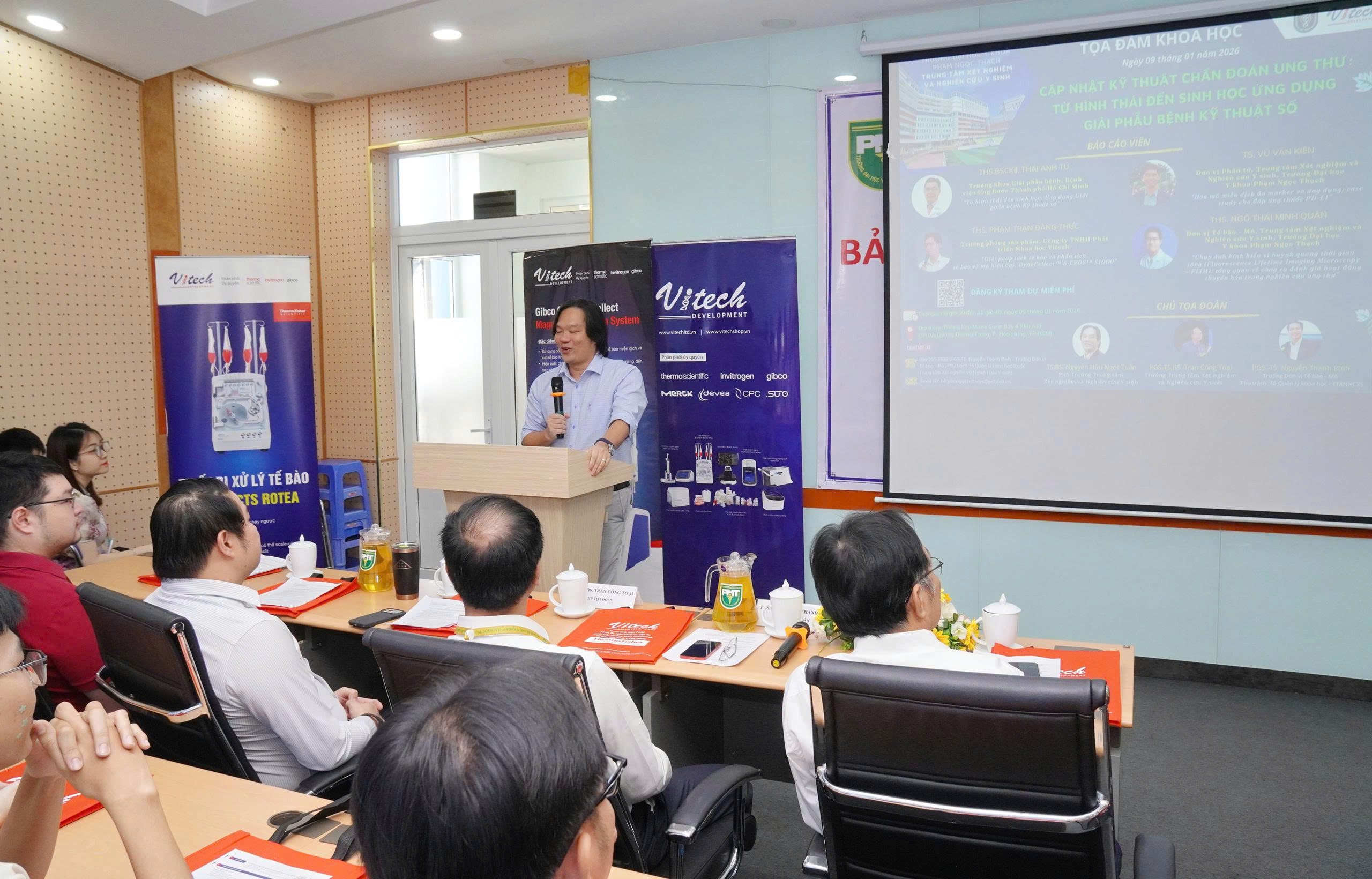 Trong bối cảnh số lượng bệnh nhân ung thư tại Việt Nam đang gia tăng nhanh chóng, việc chẩn đoán sớm và chính xác đóng vai trò "chìa khóa vàng" quyết định sự sống. Sáng ngày 09/01/2026, Trường Đại học Y khoa Phạm Ngọc Thạch (PNTU) đã tổ chức Tọa đàm “Cập nhật kỹ thuật chẩn đoán ung thư: từ hình thái đến sinh học ứng dụng giải phẫu bệnh kỹ thuật số”, mở ra những góc nhìn đột phá trong y học hiện đại.