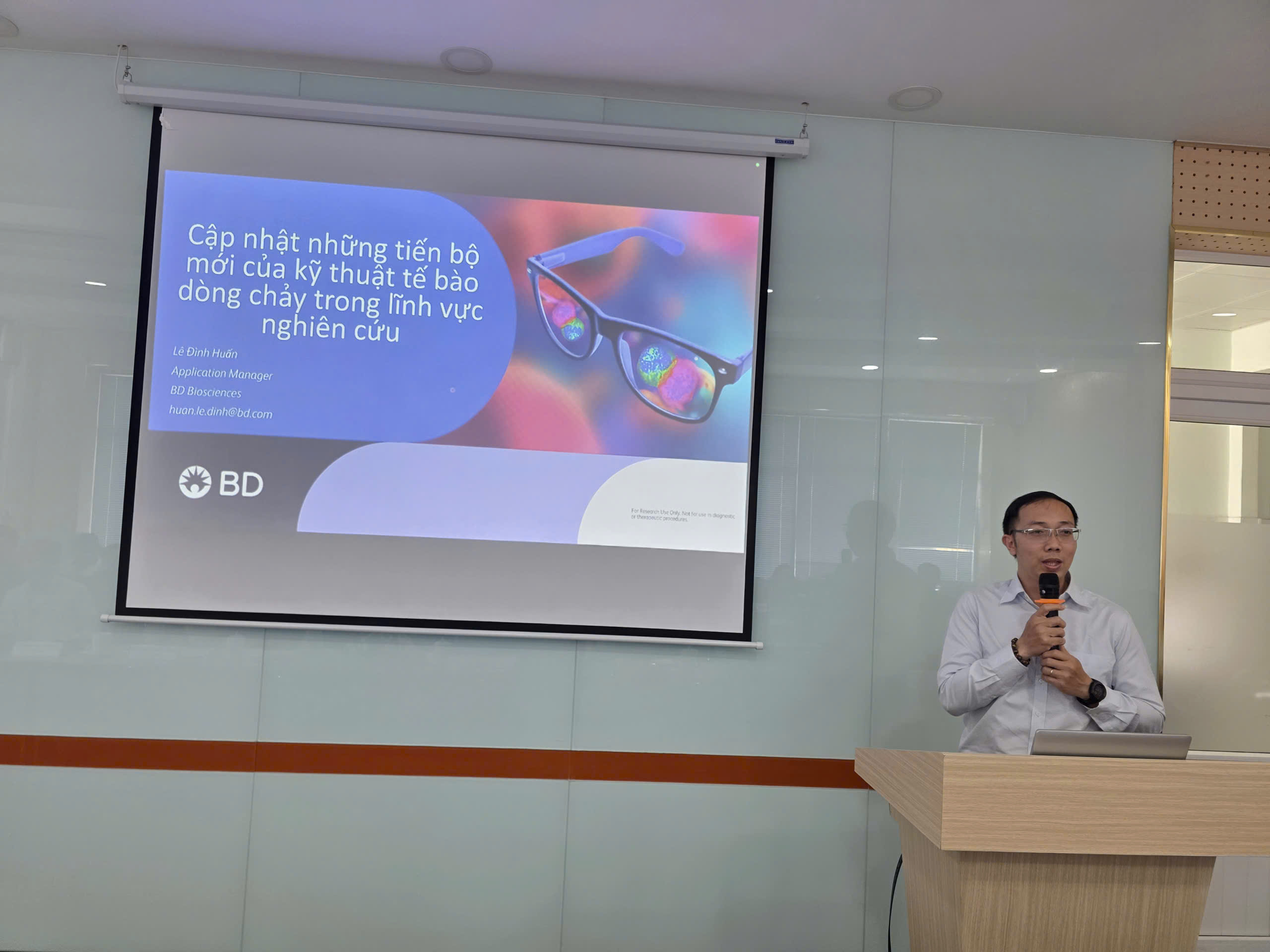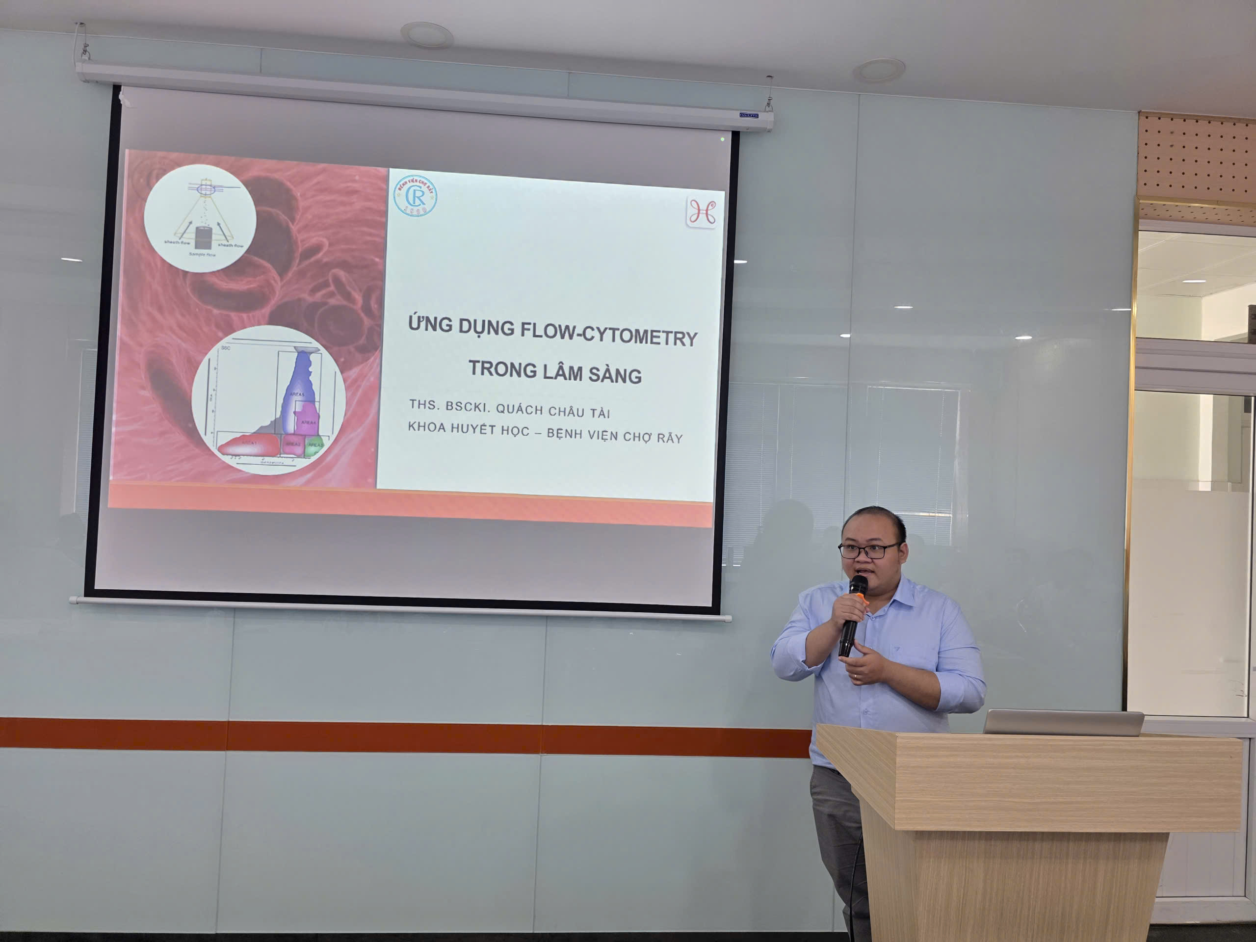 Báo cáo viên gồm ThS.BS. Quách Châu Tài - Trưởng Bộ phận Flow Cytometry, Khoa Huyết học, Bệnh viện Chợ Rẫy và ThS. Lê Đình Huấn - Trưởng phòng sản phẩm Biosciences tại Việt Nam