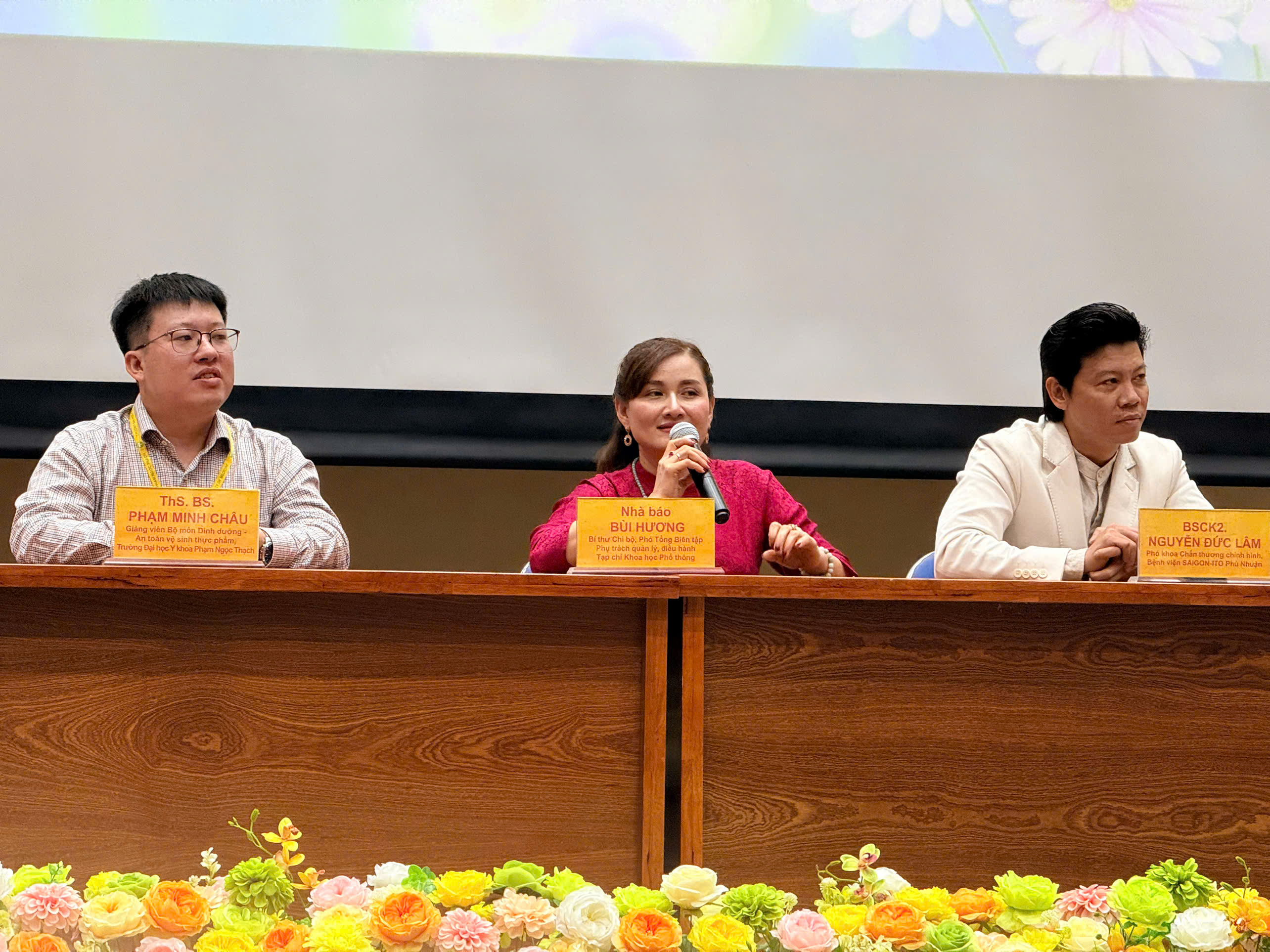 Chương trình có sự tham dự của ThS. BS. Hà Thanh Đạt – Bí thư Đoàn Thanh niên Cộng sản Hồ Chí Minh Trường, cùng đông đảo sinh viên Trường Đại học Y khoa Phạm Ngọc Thạch. Về phía Tạp chí Khoa học Phổ thông, có sự tham dự của ThS. Bùi Thị Hương – Phó Tổng Biên tập phụ trách cùng các thành viên. Đặc biệt, chương trình có sự tham gia chia sẻ của các báo cáo viên: BS.CKII. Nguyễn Đức Lâm – Phó Khoa Chấn thương Chỉnh hình, Bệnh viện SAIGON-ITO Phú Nhuận; ThS. BS. Phạm Minh Châu – Giảng viên Bộ môn Dinh dưỡng – An toàn thực phẩm Trường Đại học Y khoa Phạm Ngọc Thạch.
