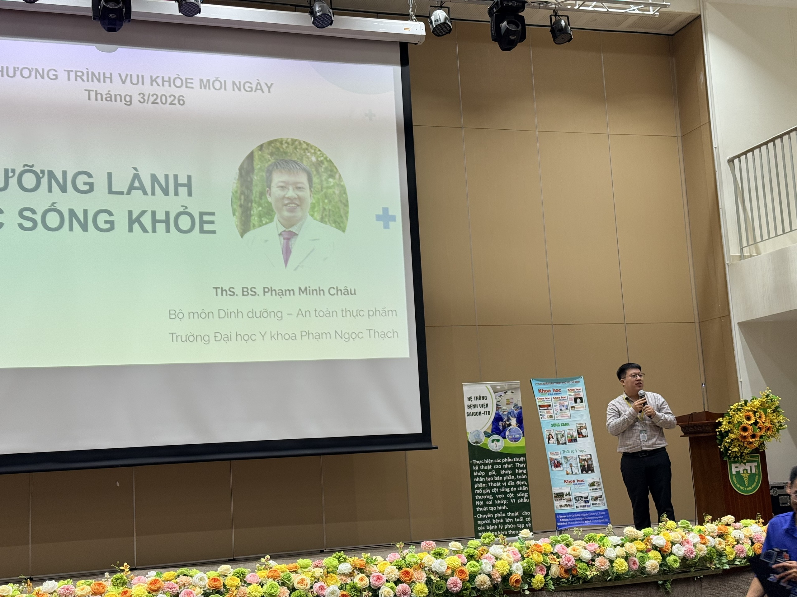 Sáng ngày 21 tháng 3 năm 2026, Trung tâm Xét nghiệm và Nghiên cứu Y sinh, Trường Đại học Y khoa Phạm Ngọc Thạch phối hợp cùng Tạp chí Khoa học Phổ thông tổ chức chương trình “Vui khỏe mỗi ngày”.