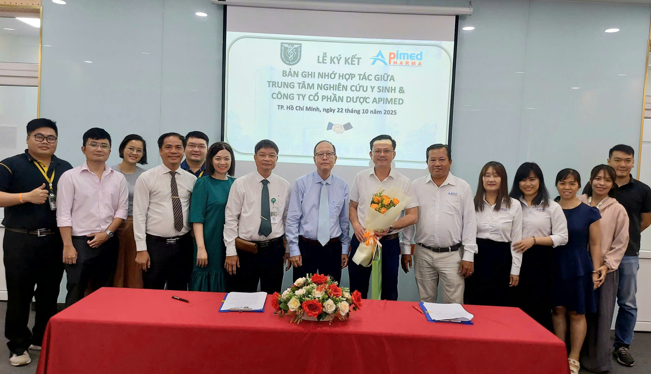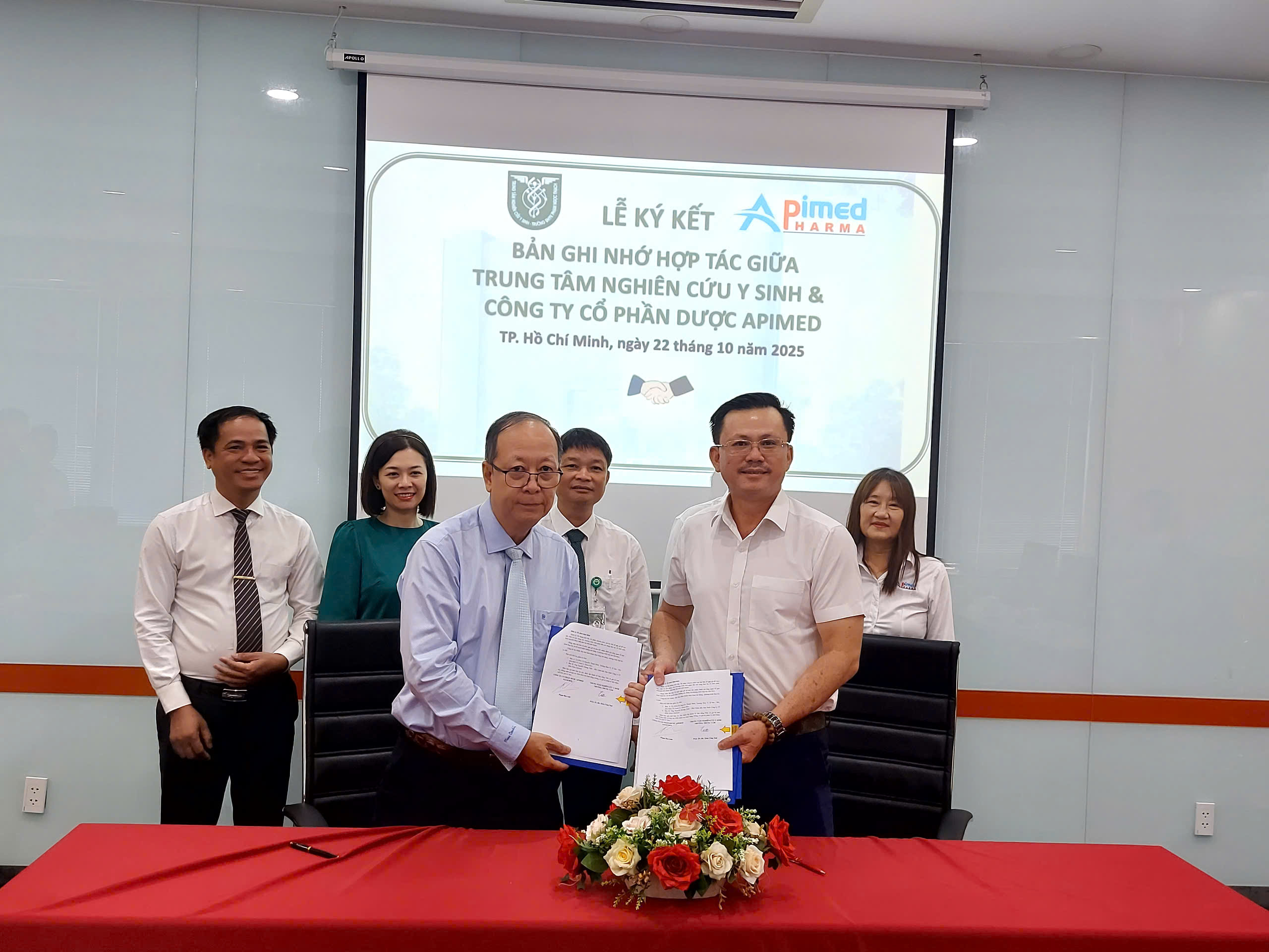 Sáng ngày 22 tháng 10 năm 2025, tại Trường Đại học Y khoa Phạm Ngọc Thạch (TĐHYKPNT) đã diễn ra lễ ký kết biên bản ghi nhớ hợp tác (MOU) giữa Trung tâm Nghiên cứu Y sinh (TTNCYS) và Công ty Cổ Phần Dược Apimed. Đại diện ký kết MOU là PGS. TS. BS. Trần Công Toại – Trưởng TTNCYS và DS. Phạm Bảo Anh – Tổng giám đốc). Buổi lễ diễn ra trước sự chứng kiến của TS.BSCKII. Phạm Quốc Dũng, Phó Hiệu trưởng TĐHYKPNT, TS.BS. Nguyễn Minh Hà – Phó Trưởng TTNCYS, DS. Nguyễn Hoàng Tuấn – Phó Giám đốc công ty cùng các cán bộ chủ chốt của 2 đơn vị.